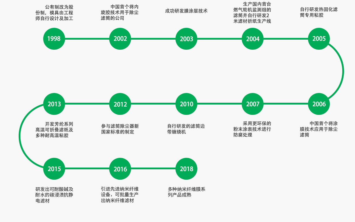 除塵器的關鍵在于濾筒,濾筒的關鍵在于濾材。公司一直致力于自主研發(fā)高性能優(yōu)質濾材,從自己制造走向自己創(chuàng)造,目前已成功量產出精度等級從F6到H13(歐洲EN779標準)的各系列濾材,開發(fā)了一系列包括PTFE熱熔覆膜、靜電納米纖維紡絲及防爆、防粘、防水、防油、阻燃等適合不同工況的過濾材料。